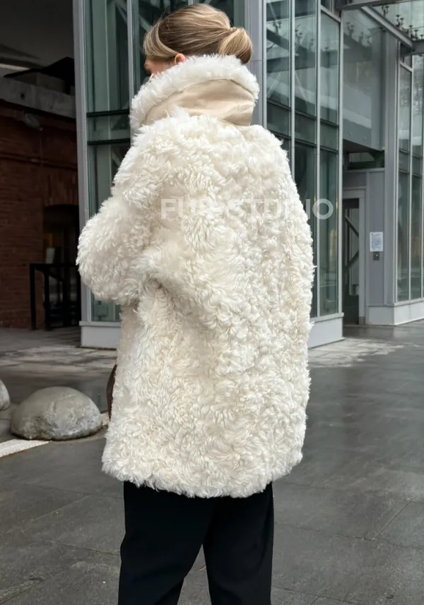 Белая шубка из тиградо. Модель предлагается в размерах от 42 до 48. Оптимальная длина моделей 70-75 см подчеркивает линии вашей фигуры. Эта дубленка станет неотъемлемой частью гардероба для тех, кто предпочитает роскошь и утонченность натуральной кожи.