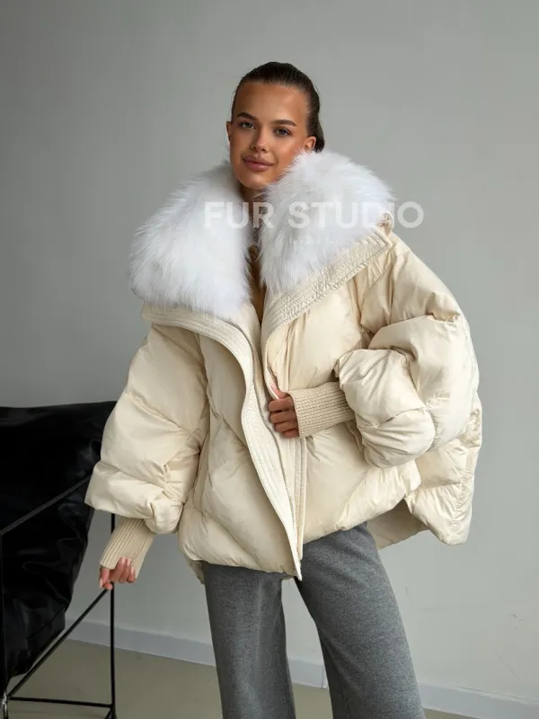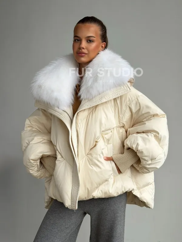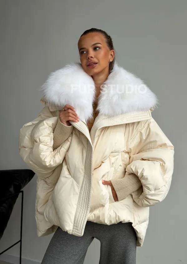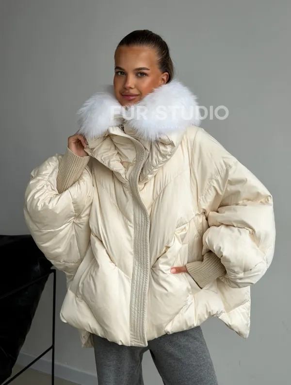 Бежевый зимний пуховик 102581