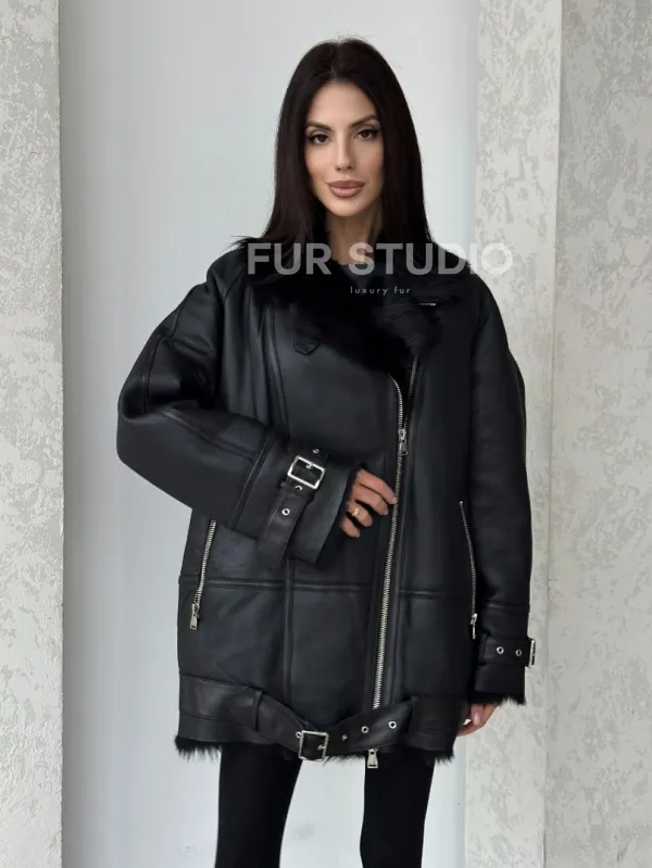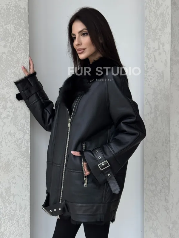 Черная дубленка - авиатор на тоскане 100757