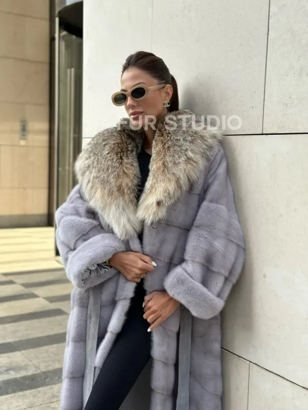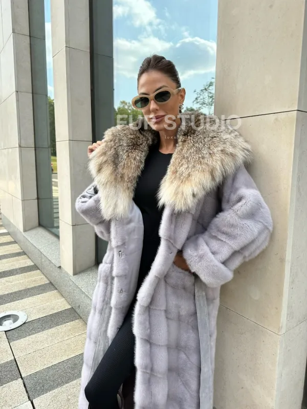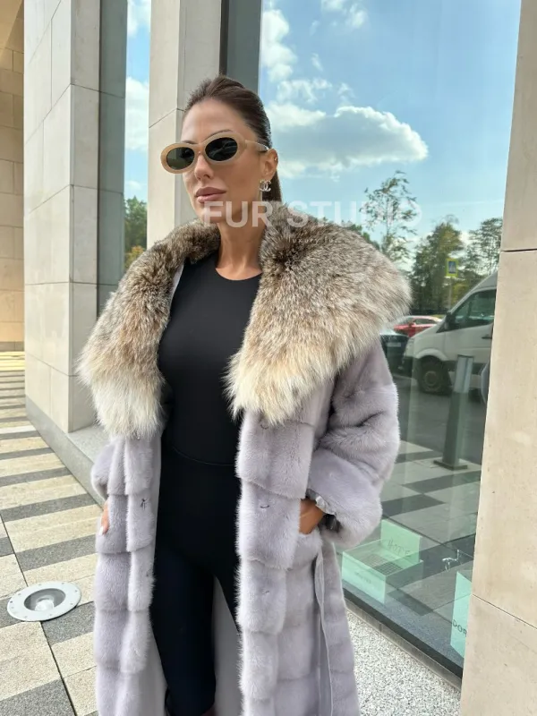 норковая шуба с капюшоном из меха рыси цвет серый сапфир доступна для покупки в нашем шоуруме Furs Studio в . У нас так же есть доставка во все города России. Добавьте немного роскоши в свой гардероб с этой шубой, которая будет служить вам многие годы.