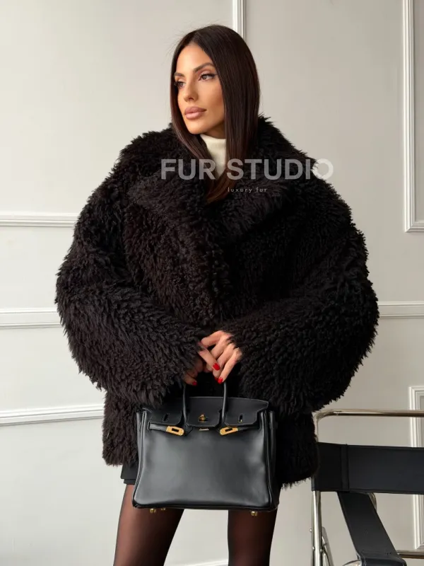 Коричневая дубленка из меха Тиградо 102610