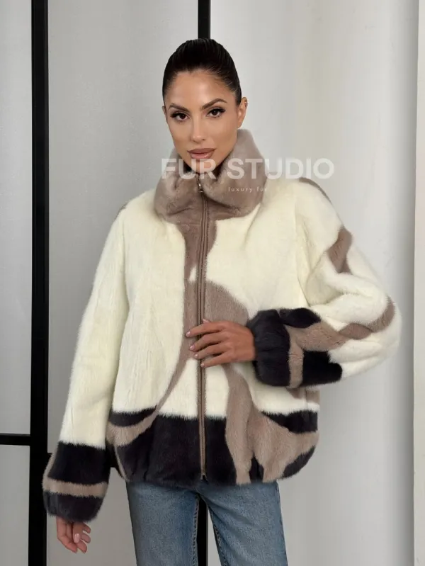 Норковый бомбер на молнии стойка воротник 101373