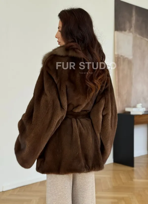 Норковый полушубок - цвет соболь 102319