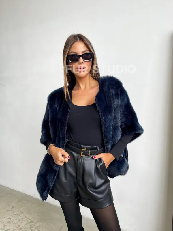 Норковый свитер на молнии в цвете индиго - незаменимый элемент в гардеробе в межсезонье. Нежная норка бережно согреет вас в непогоду и даст ощущение комфорта. Удобный фермуар можно расстегнуть, если будет жарко. Укороченный рукав подчеркнет тонкие кисти. Отличный выбор для женщин любого возраста.