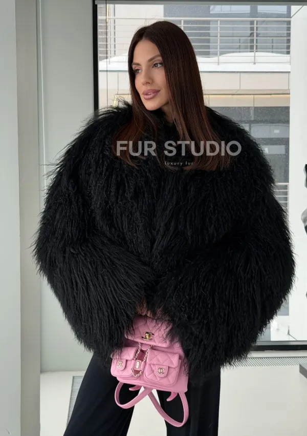 Полушубок черный из ламы 102526