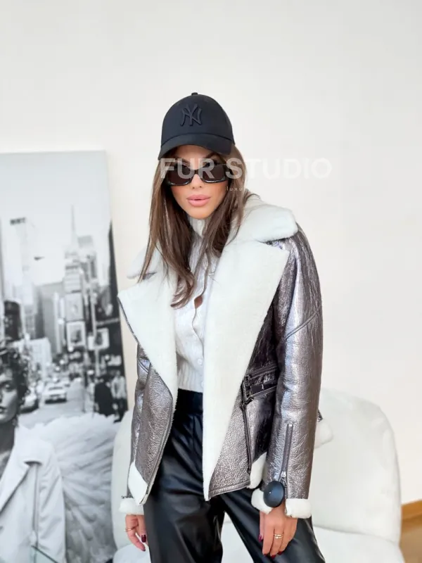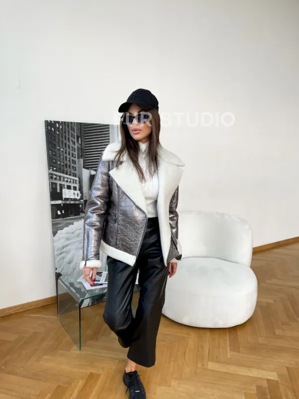 Дубленка овчина короткая - серебро 100176